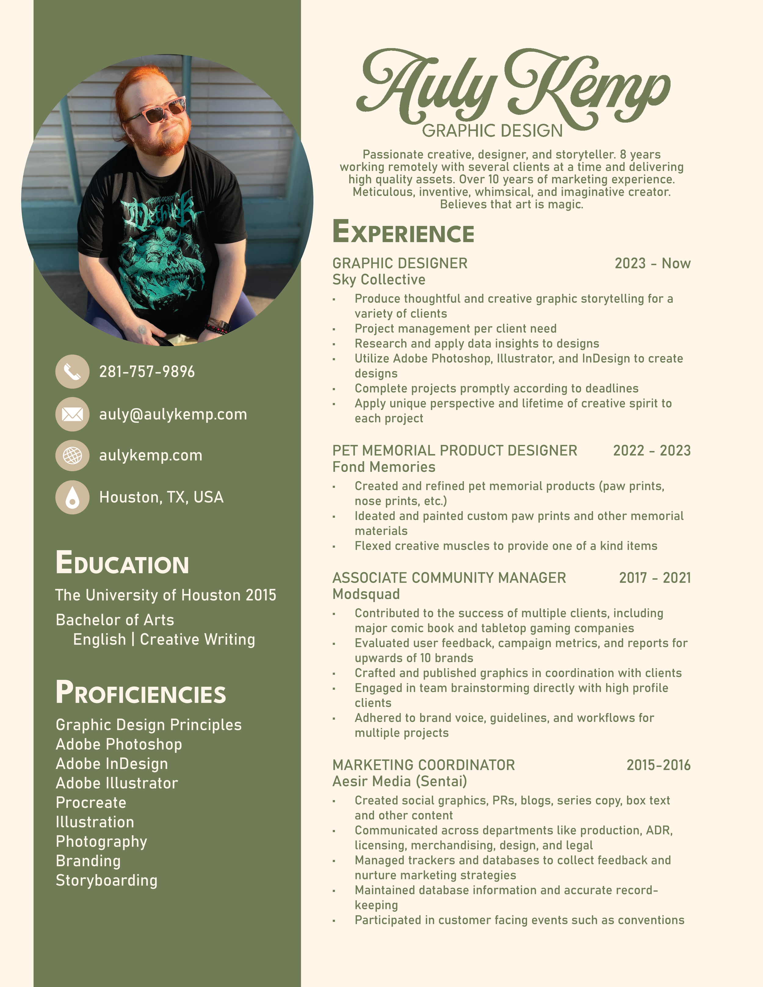 I'm Auly, a graphic designer and brand expert with a keen interest in brand identity, packaging, logo design, and illustration. I am particularly proud of my ability to shift style to suit client needs. With over a decade of experience in marketing and brand development, I have worked with some of the biggest names in social media, comics, and gaming.